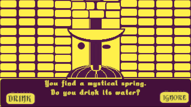 The game is a small dungeon crawler where the player goes through different rooms and descends different floors until they encounter the final boss. The order in which the rooms appear, the enemies in them, and their rewards are random. Between floors, there is a shop where the player can purchase more potions, improve damage and shields, to continue descending to the next rooms.